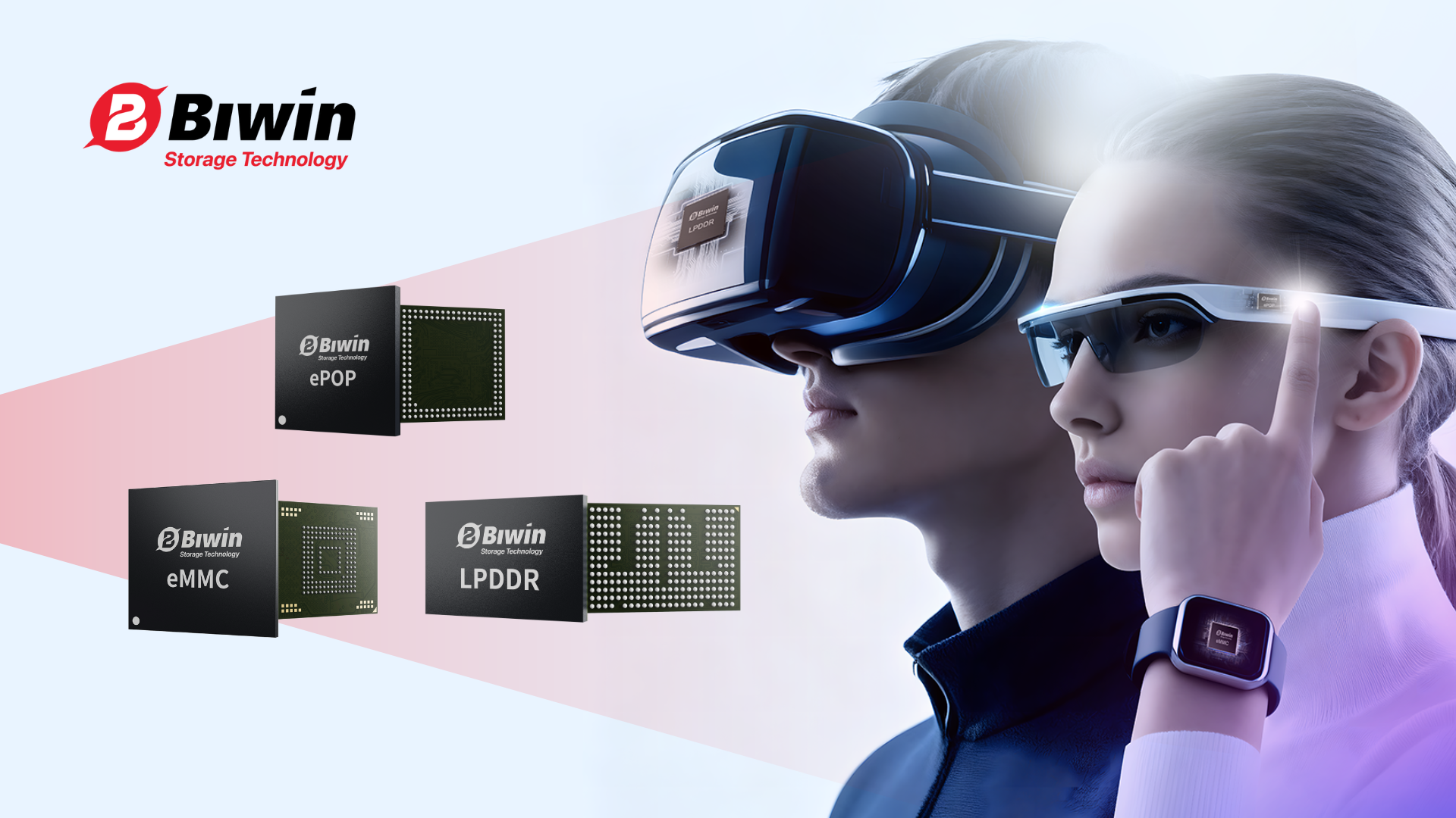 The BIWIN ePoP LPDDR4X combines LPDDR4X DRAM and eMMC 5.1 into a single 144-ball PoP package with capacities up to 64 GB+32 Gb. With a compact size of just 8.00 x 9.50 mm, it achieves sequential read and write speeds up to 290 MB/s and 140 MB/s, with a frequency up to 4266 Mbps. Compared to previous generations, this solution features a 128.6% increase in frequency, a 32% reduction in size, making it an ideal storage solution for the design of ultra-slim, lightweight smart wearable devices and next-generation mobile electronics.